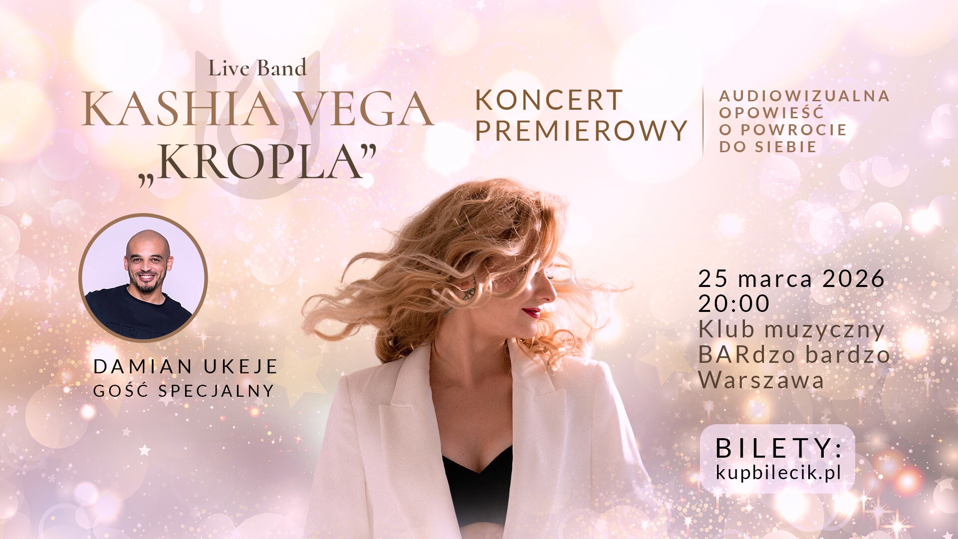 25 marca, moment po pierwszym dniu wiosny, w klubie muzycznym BARdzo bardzo zabrzmi materiał z albumu w pełnym, zespołowym brzmieniu. „KROPLA” to autorski projekt KASHI VEGI, w którym muzyka, obraz i słowo splatają się w spójną opowieść o kobiecej drodze – relacji z samą sobą, wewnętrznych przemianach i odwadze podążania za głosem serca.